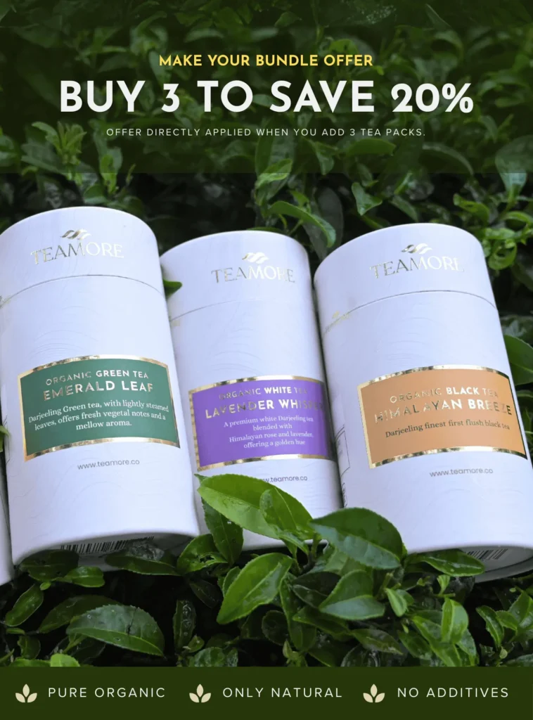 Teamore uses handpicked, organic ingredients sourced from the pristine hills of Darjeeling and Himalayan. Every blend is carefully curated to balance taste, wellness, and tradition in one cup.
